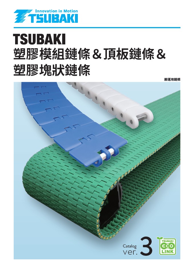 - 可使用與曲線輸送用塑膠頂板鏈條(TTUP、TPU型)相同的鏈輪。實現零部件共用